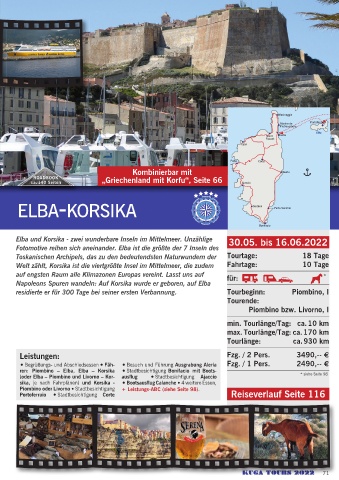 ren: Piombino – Elba, Elba – Korsika • Stadtbesichtigung Bonifacio mit Boots-