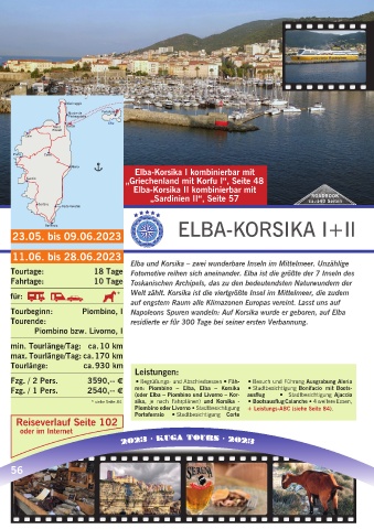 * siehe Seite 84 sika, je nach Fahrplänen) und Korsika - • Bootsausfl ug Calanche • 4 weitere Essen,